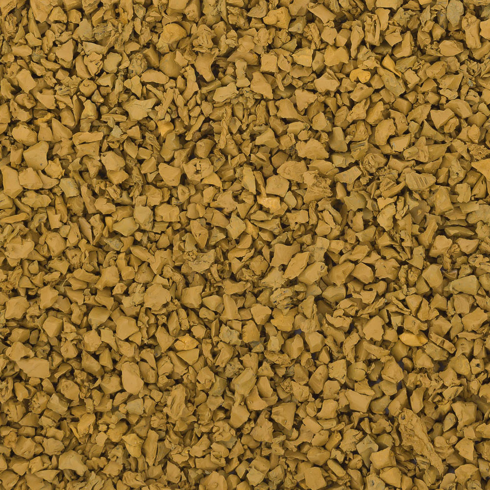 Произведена путем окрашивания черной резиновой крошки с помощью стойких пигментов. подходит для площадок с растительной тематикой. Красиво смотрится с синим, коричневым и желтым цветами.